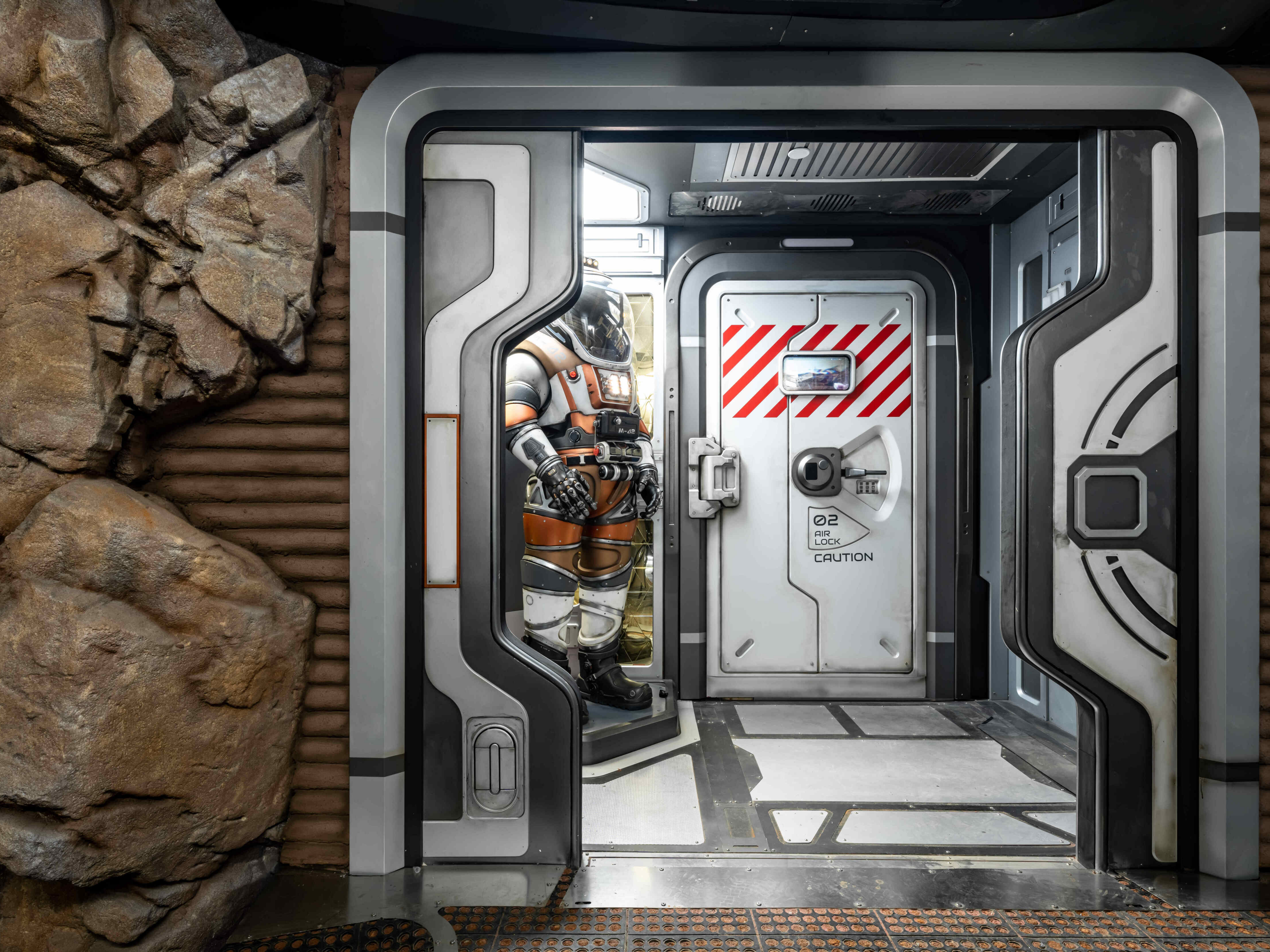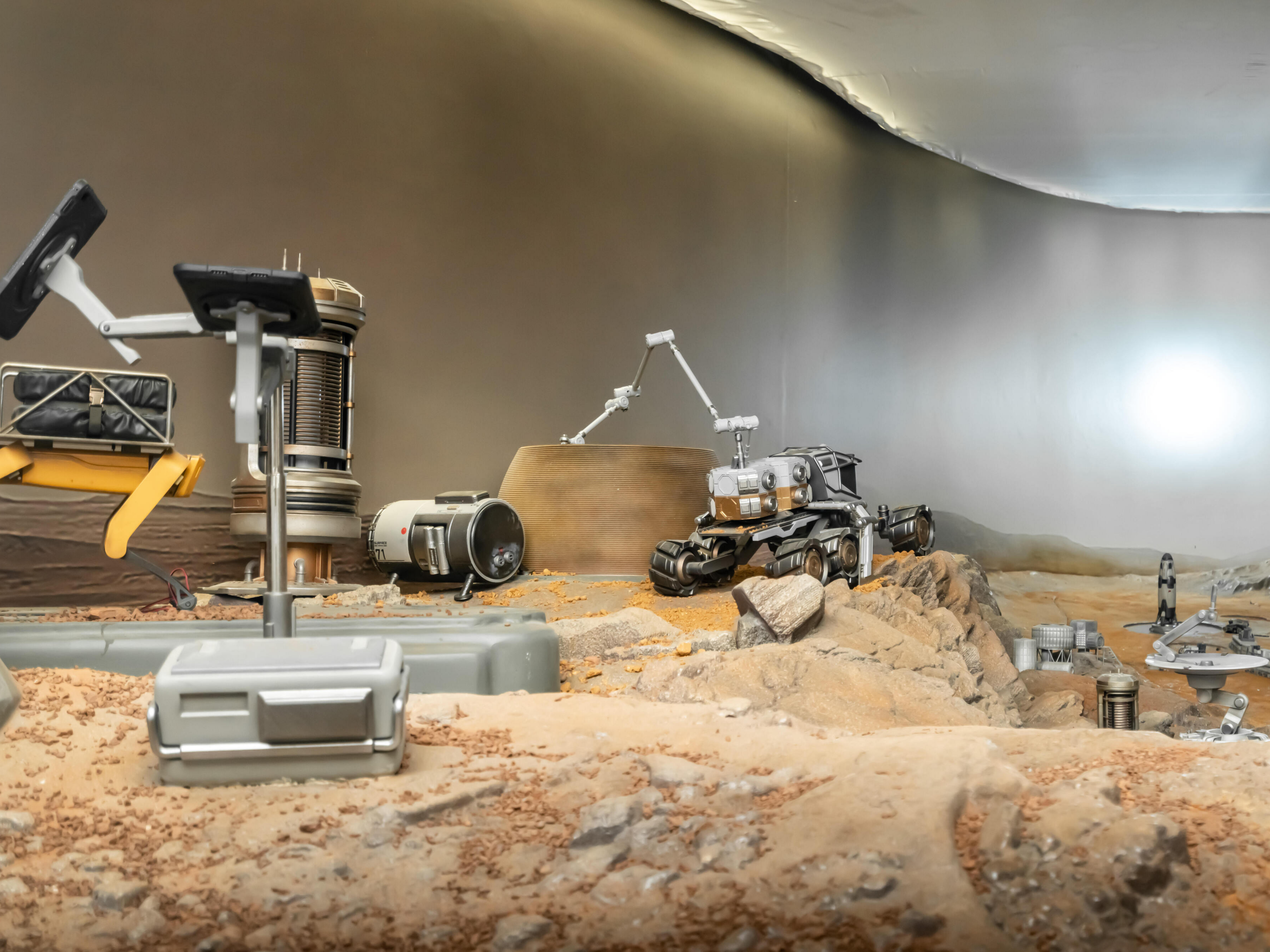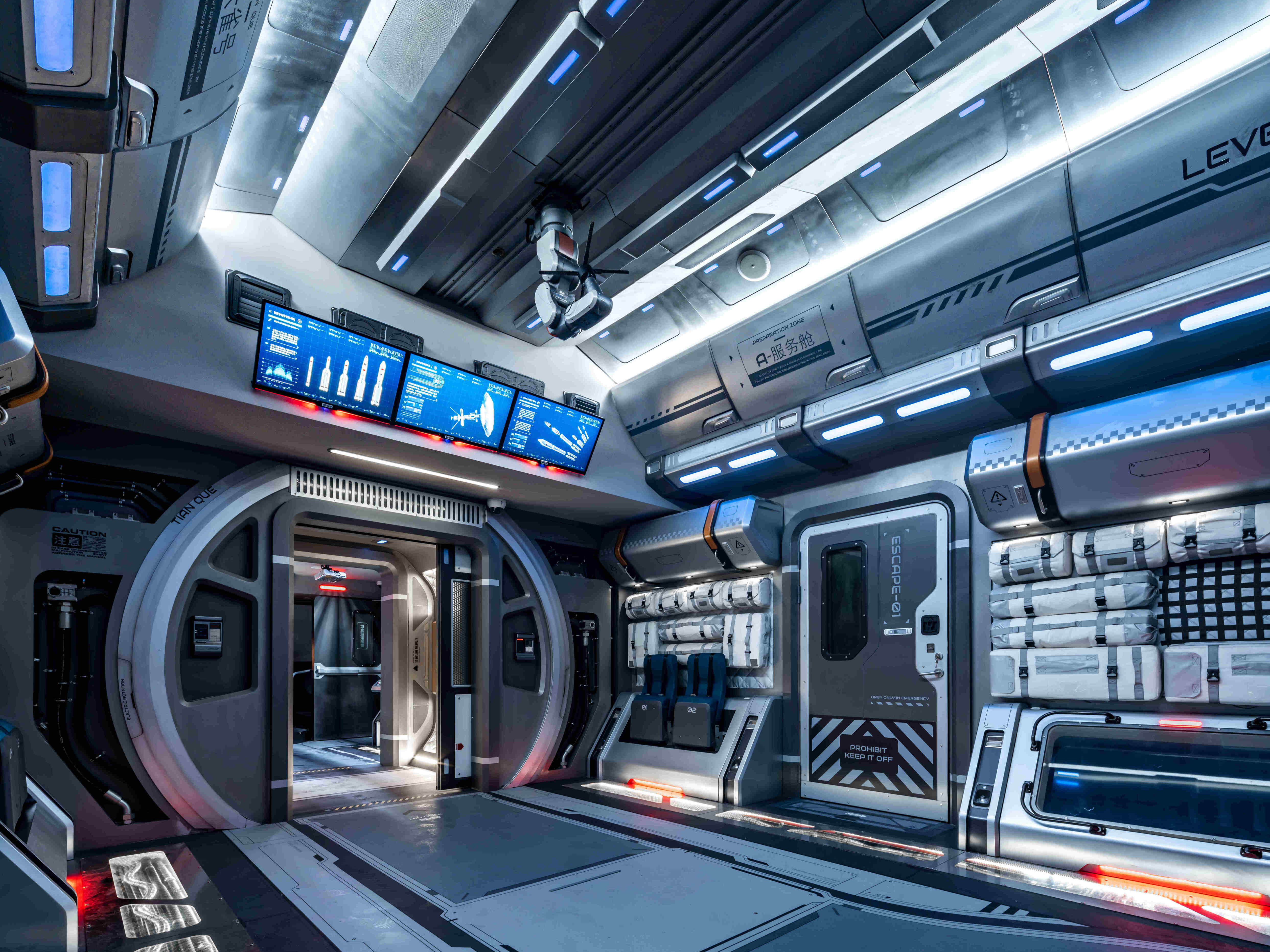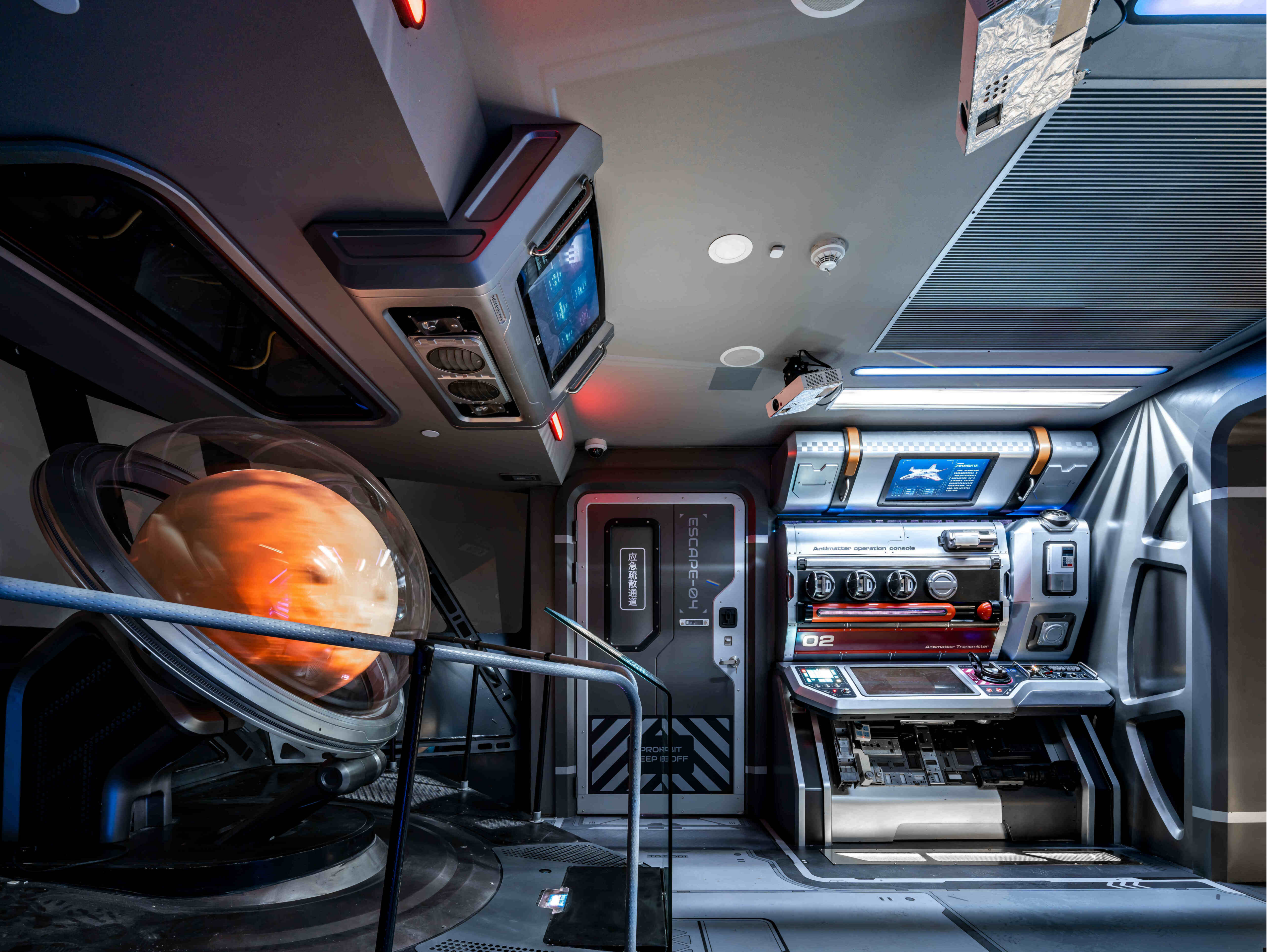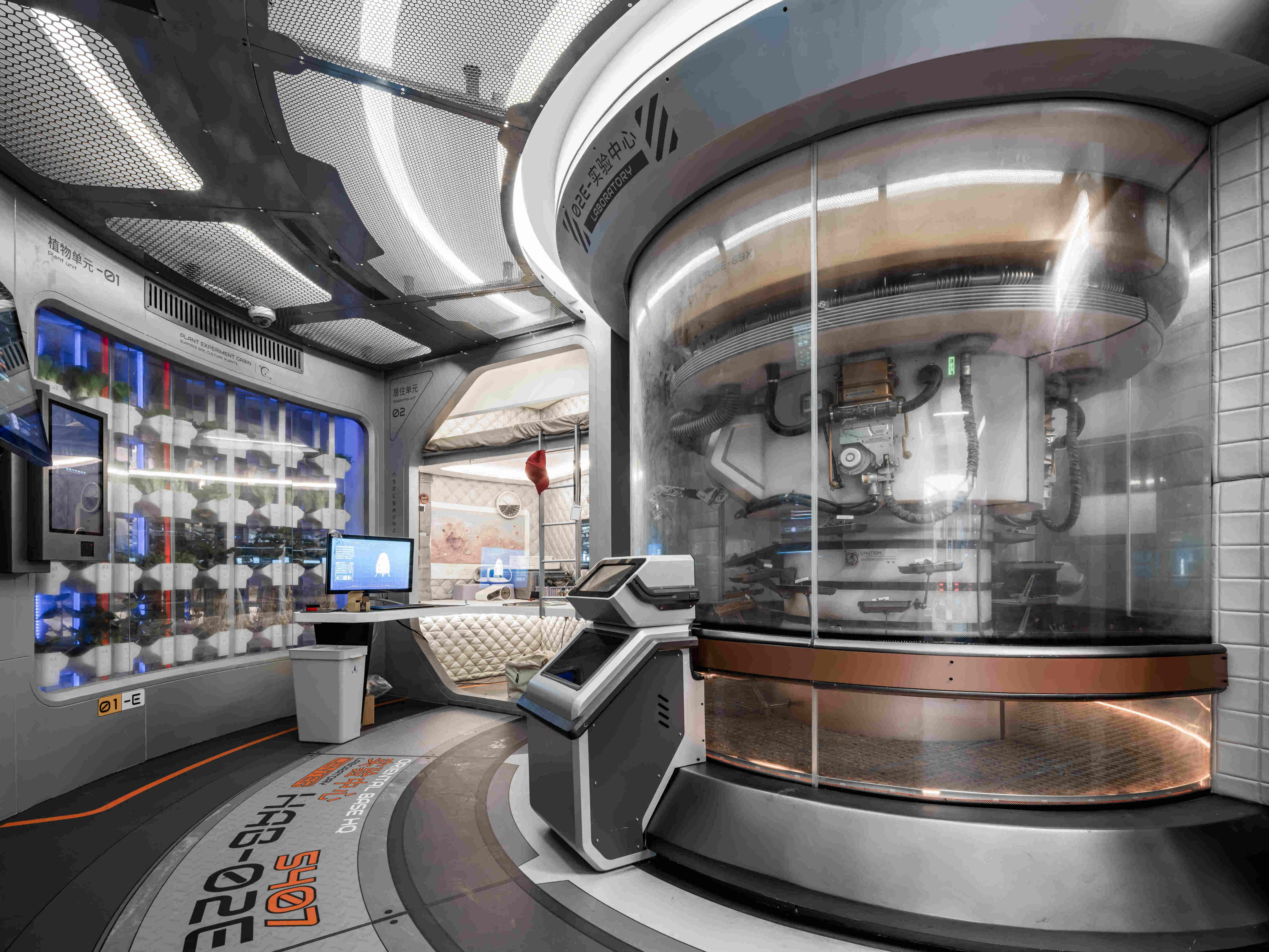 航向火星特展,展览项目位于上海天文馆中华问天展区,占地300平米。该项目是通过构建虚拟的中国航天发展世界观,通过科幻实景的创建、深度互动的链接、丰富的情感之旅以及价值观的传递,通过巧妙的布局规划,在展览空间内营造出一个内容丰富、层次分明的场景,并通过机械互动展品、多媒体展项以及科幻景观的多重创新方式,将艺术、知识和科学完美融合,带领游客身临其境地感受火星登陆及基地科考的过程。我们旨在展现宇宙探索的魅力,让游客对火星、宇宙和未来产生深刻的思考。