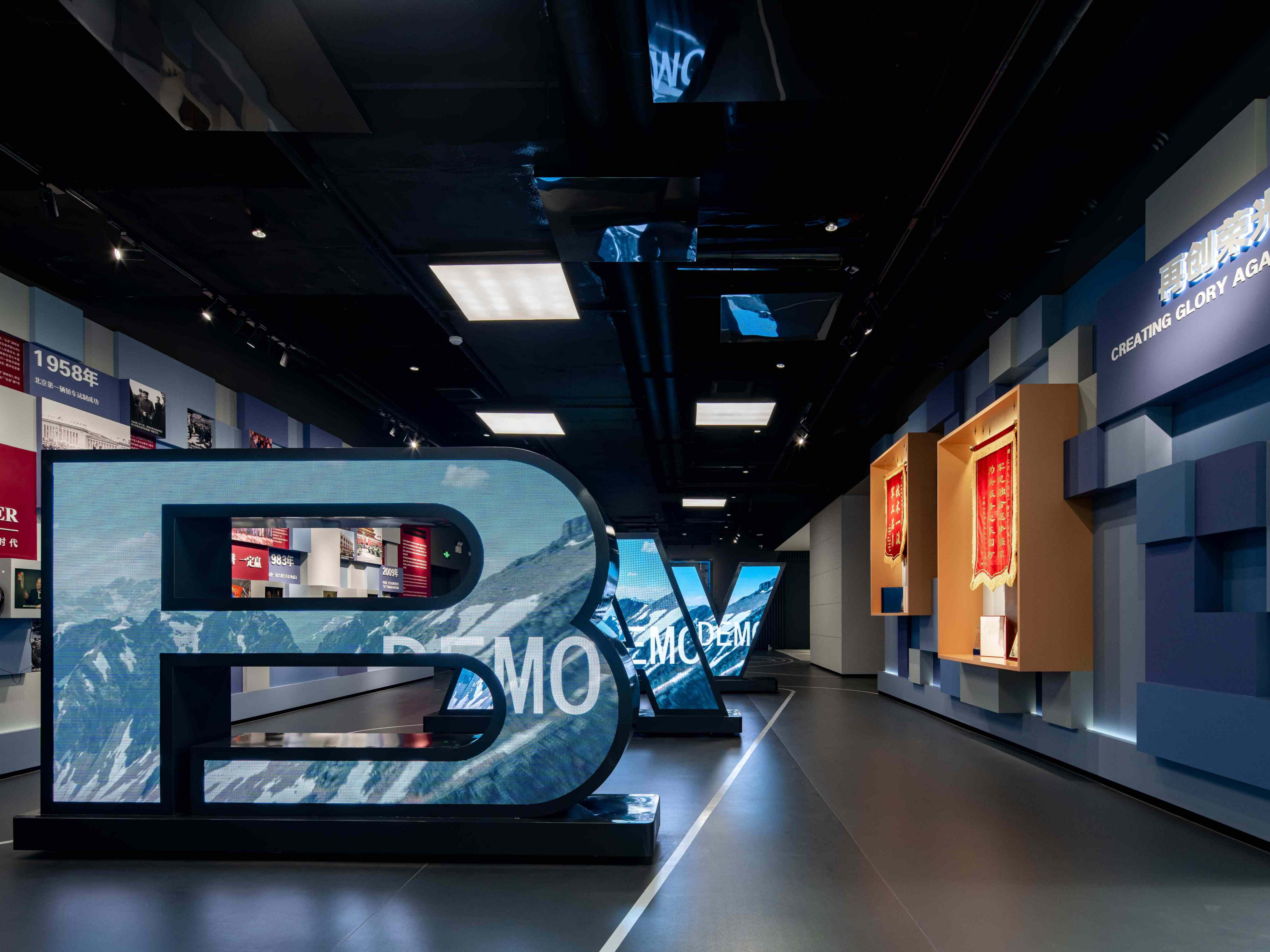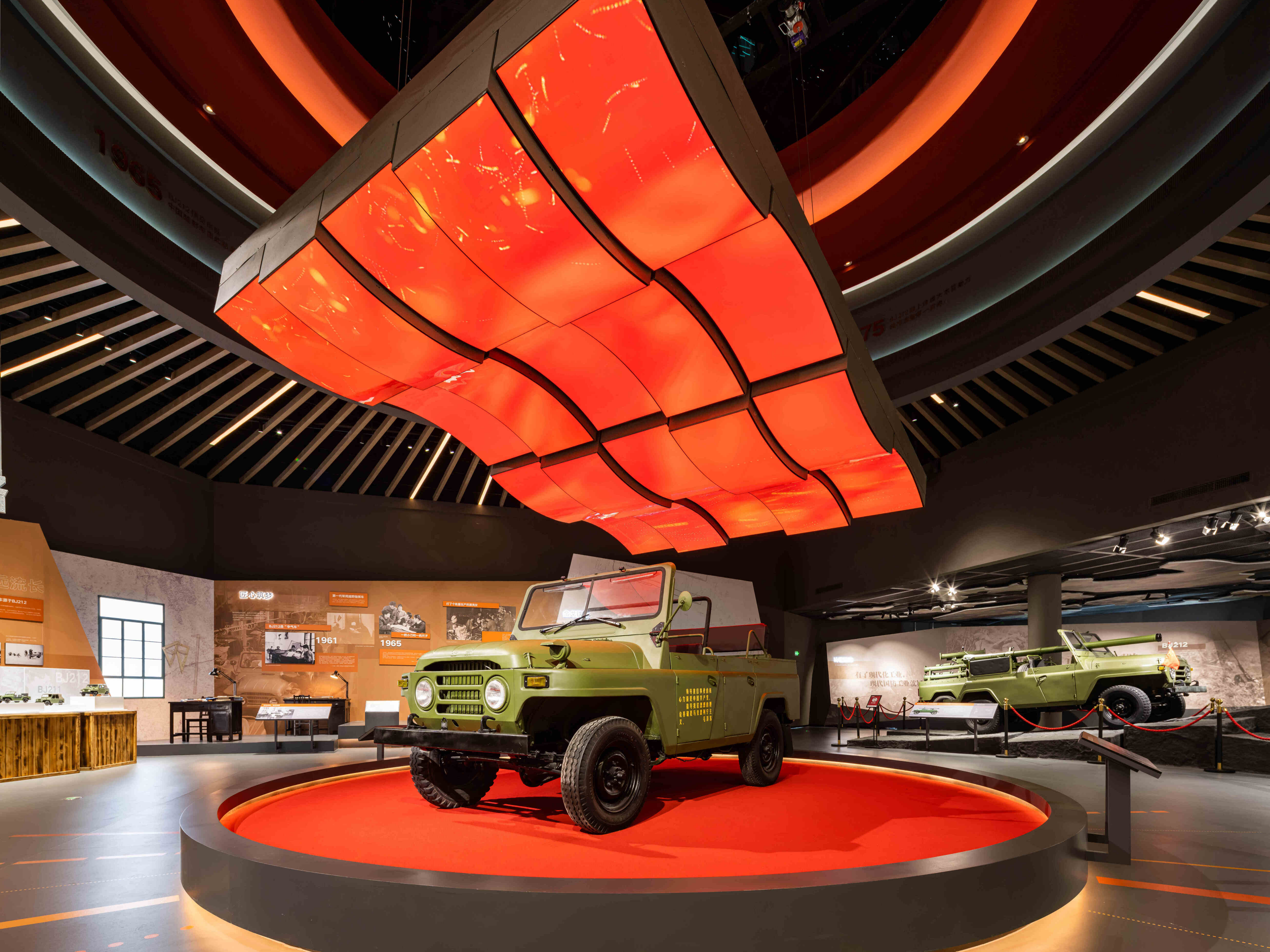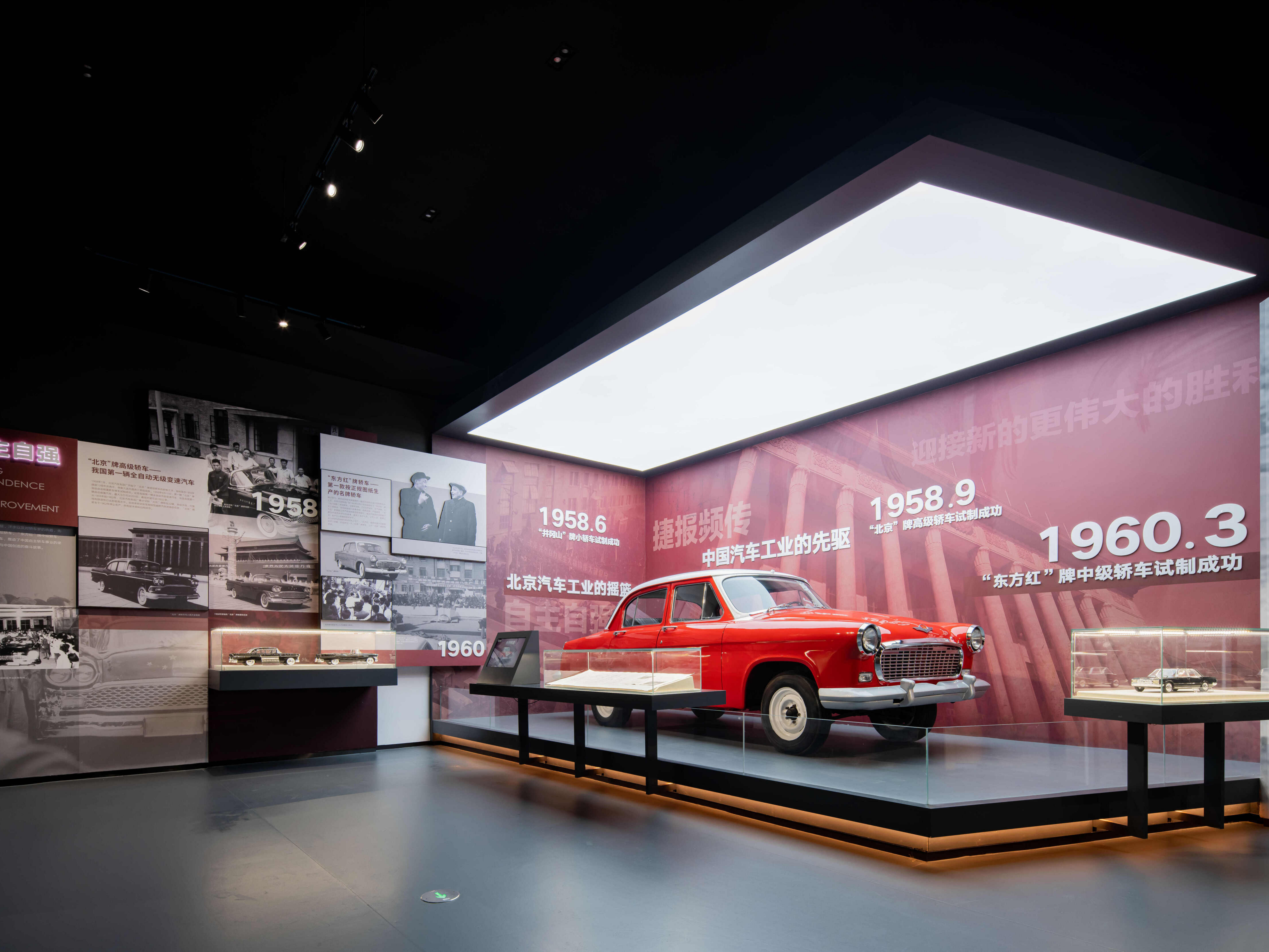 北汽博物馆的建立不仅是中国70年汽车工业的缩影,同时也承载了北汽品牌向世界表达思想态度的商业空间。在这座4300平米的空间中,我们在“传奇不朽 一起伟大”的叙述主题下,展开了历史、当下、未来三个阶段叙事的宏观序列。