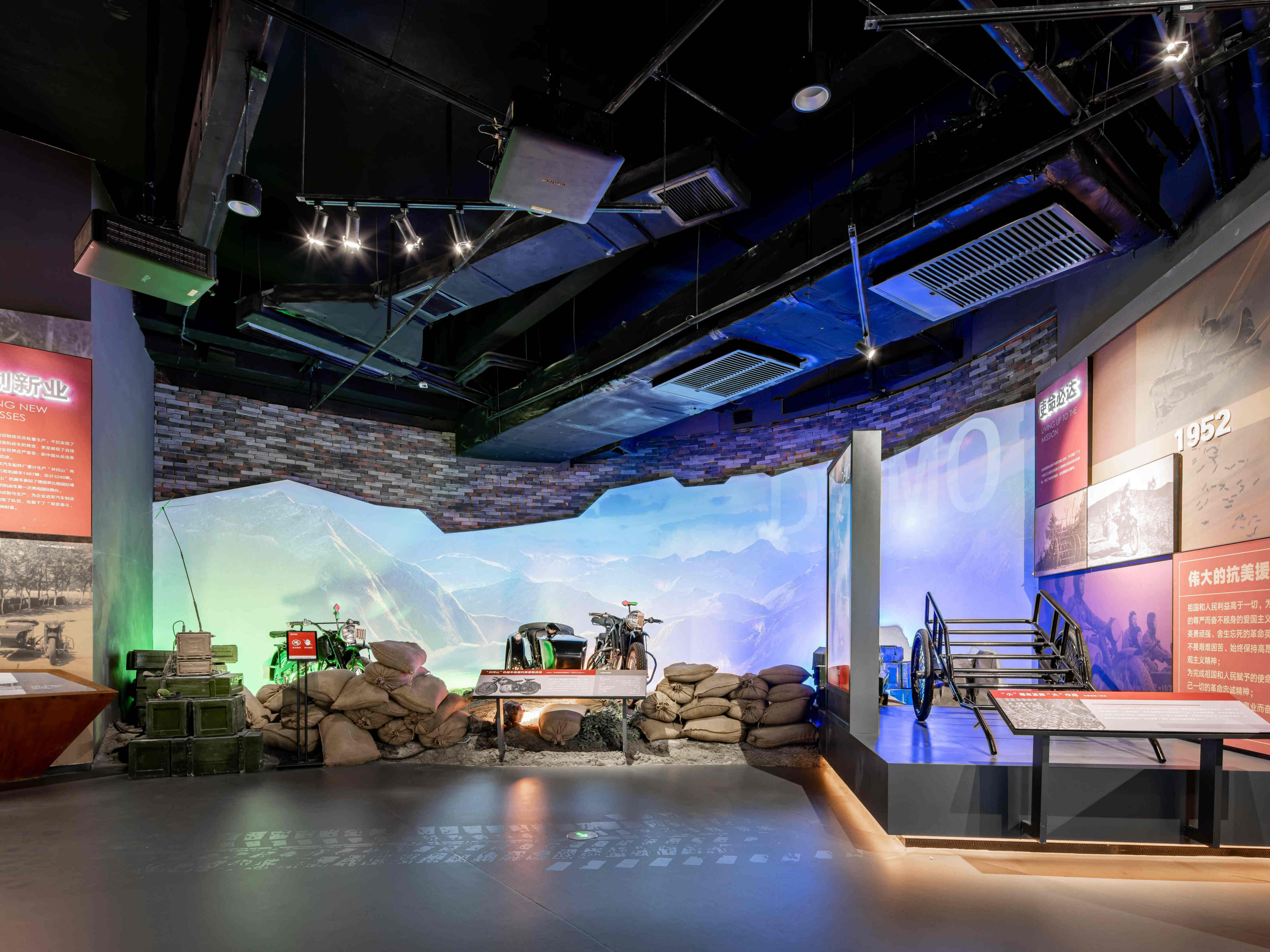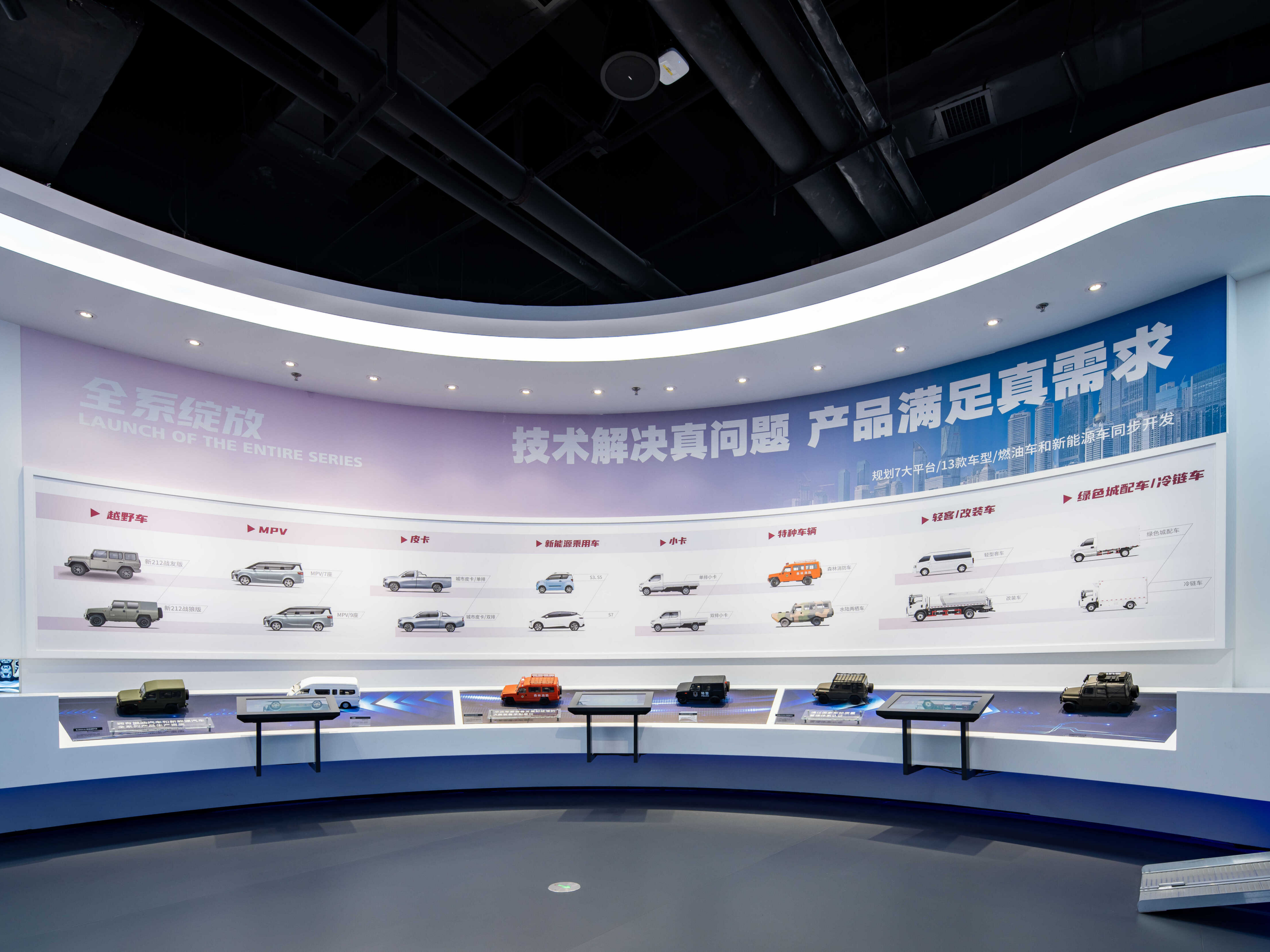 从序厅的越野图腾征途不止开始,沿着时间线索,设置开创之路