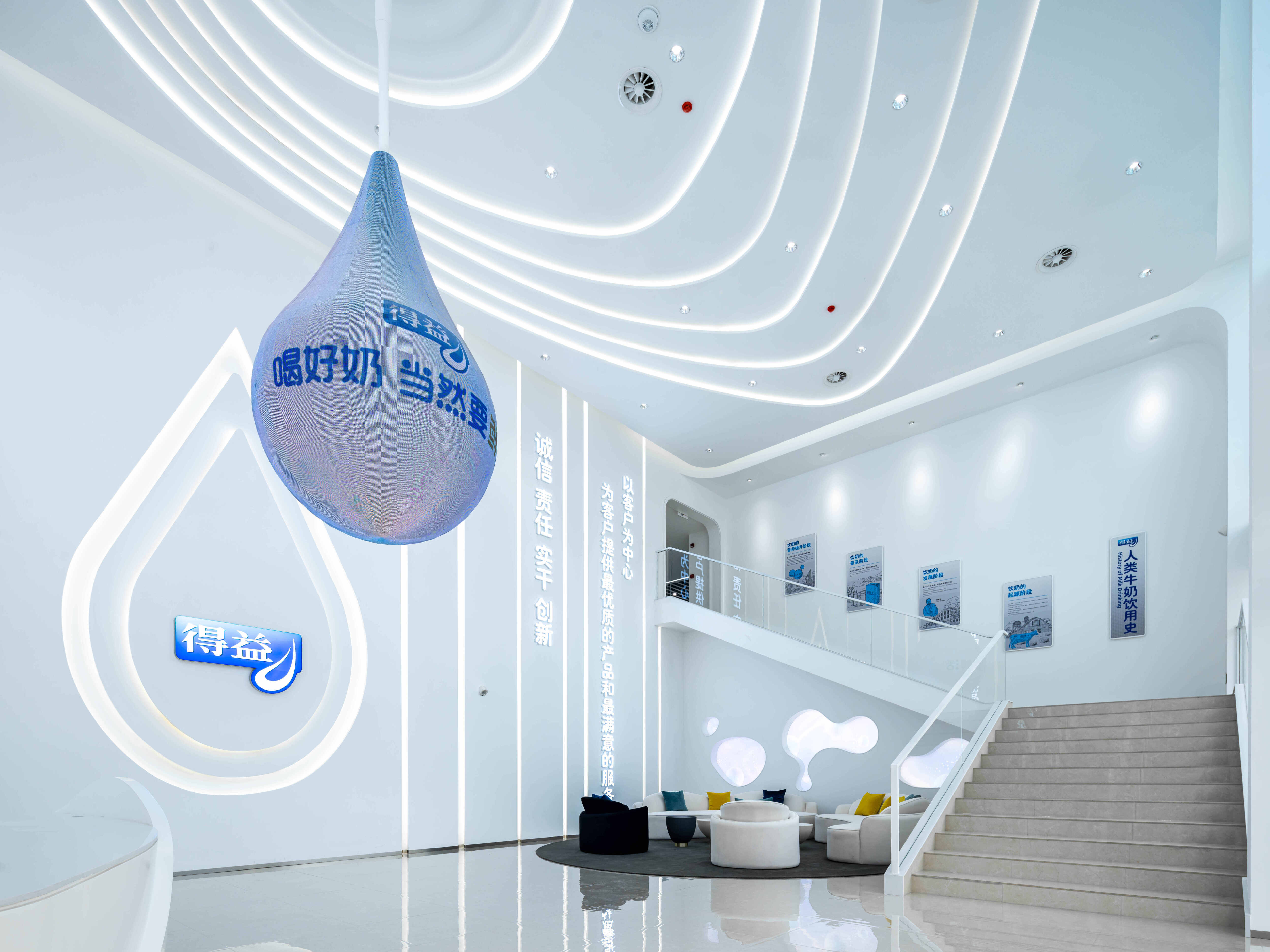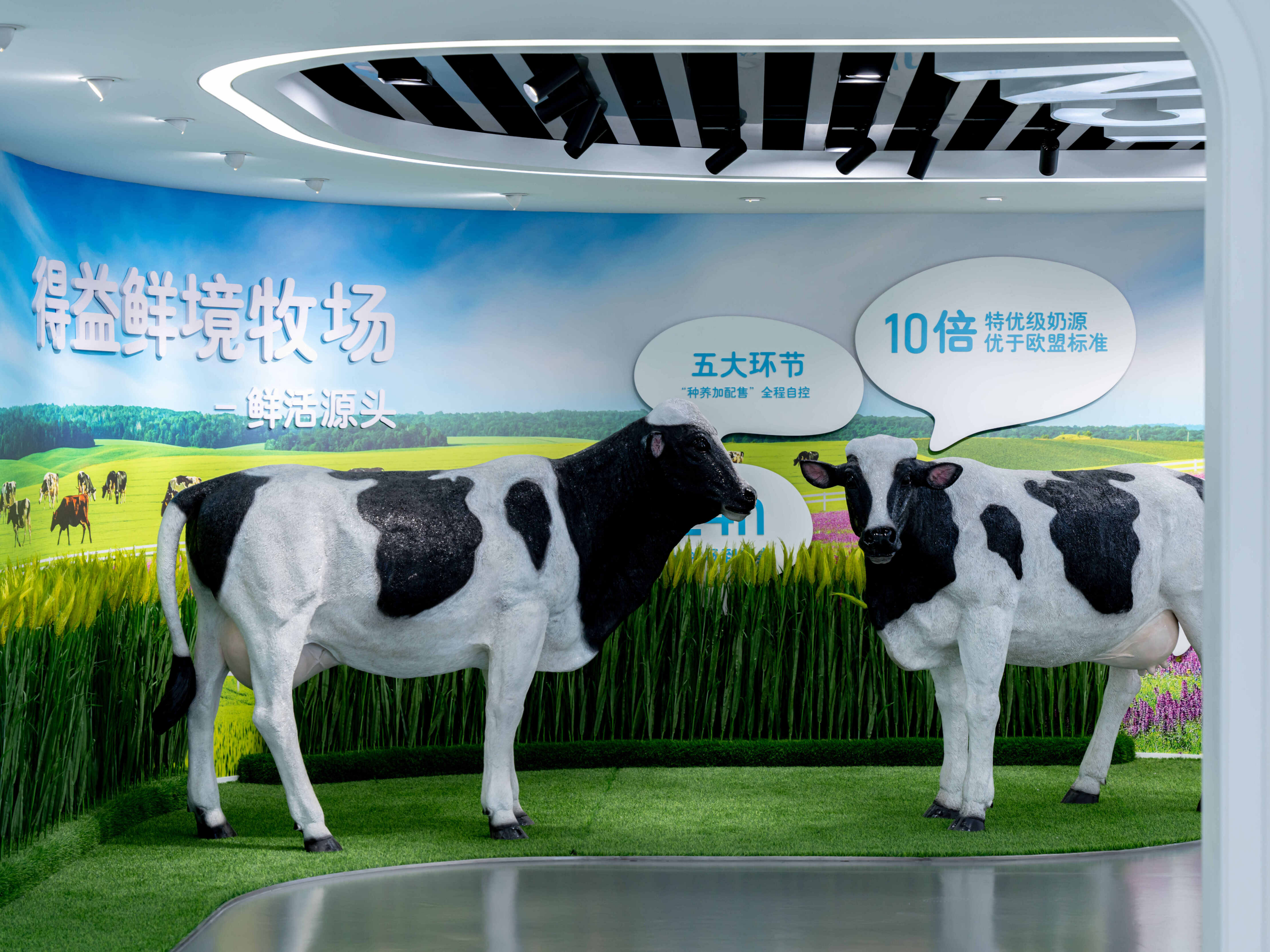 从了解得益在行业的初心与坚守,到洞悉得益在低温奶行业的专业实力。通过牧场环境造景、交互式沙盘、超宽幅数据大屏、“鲜”锋产品展示等打造体验的高光场域,由表及里带动观众